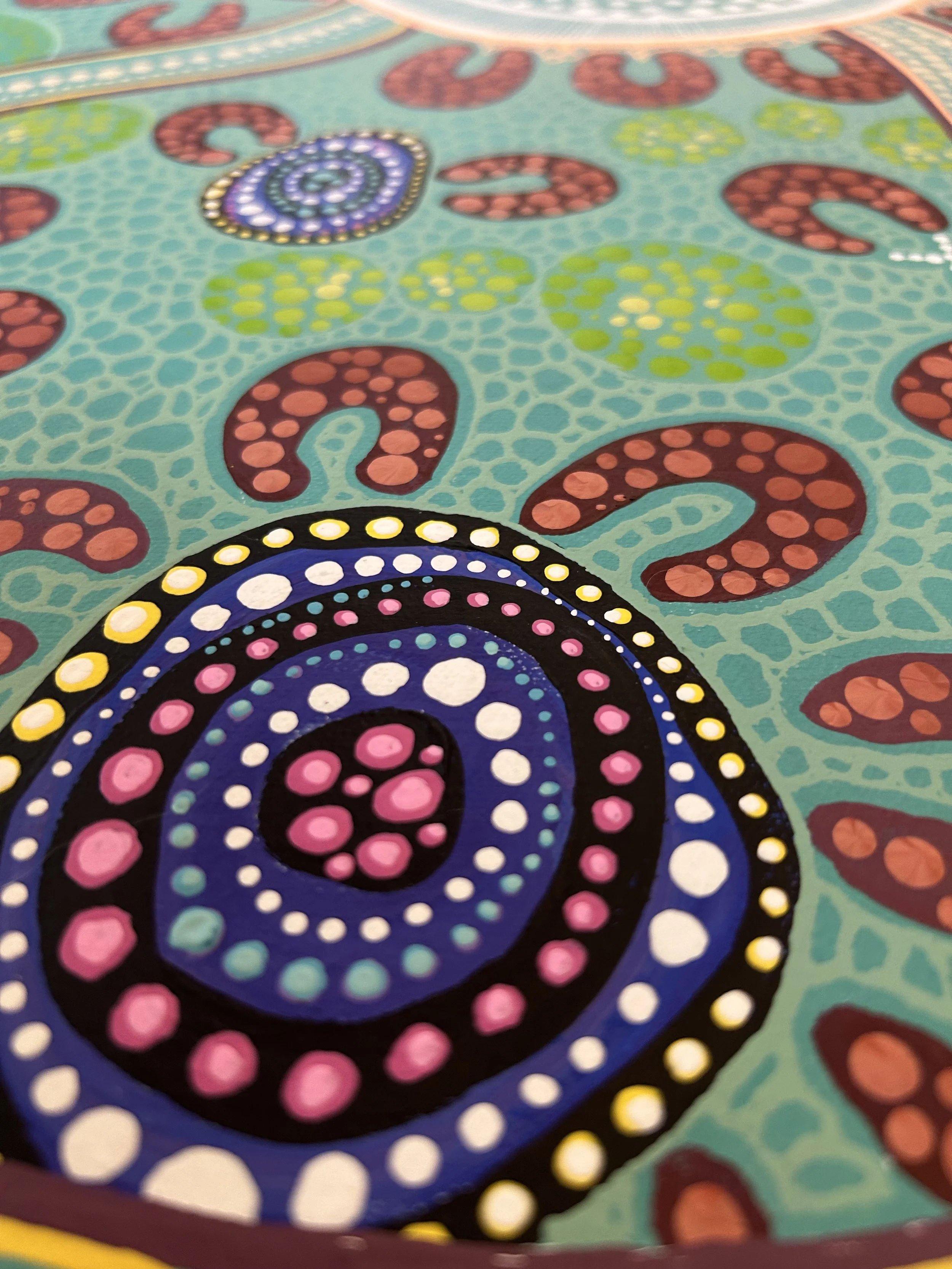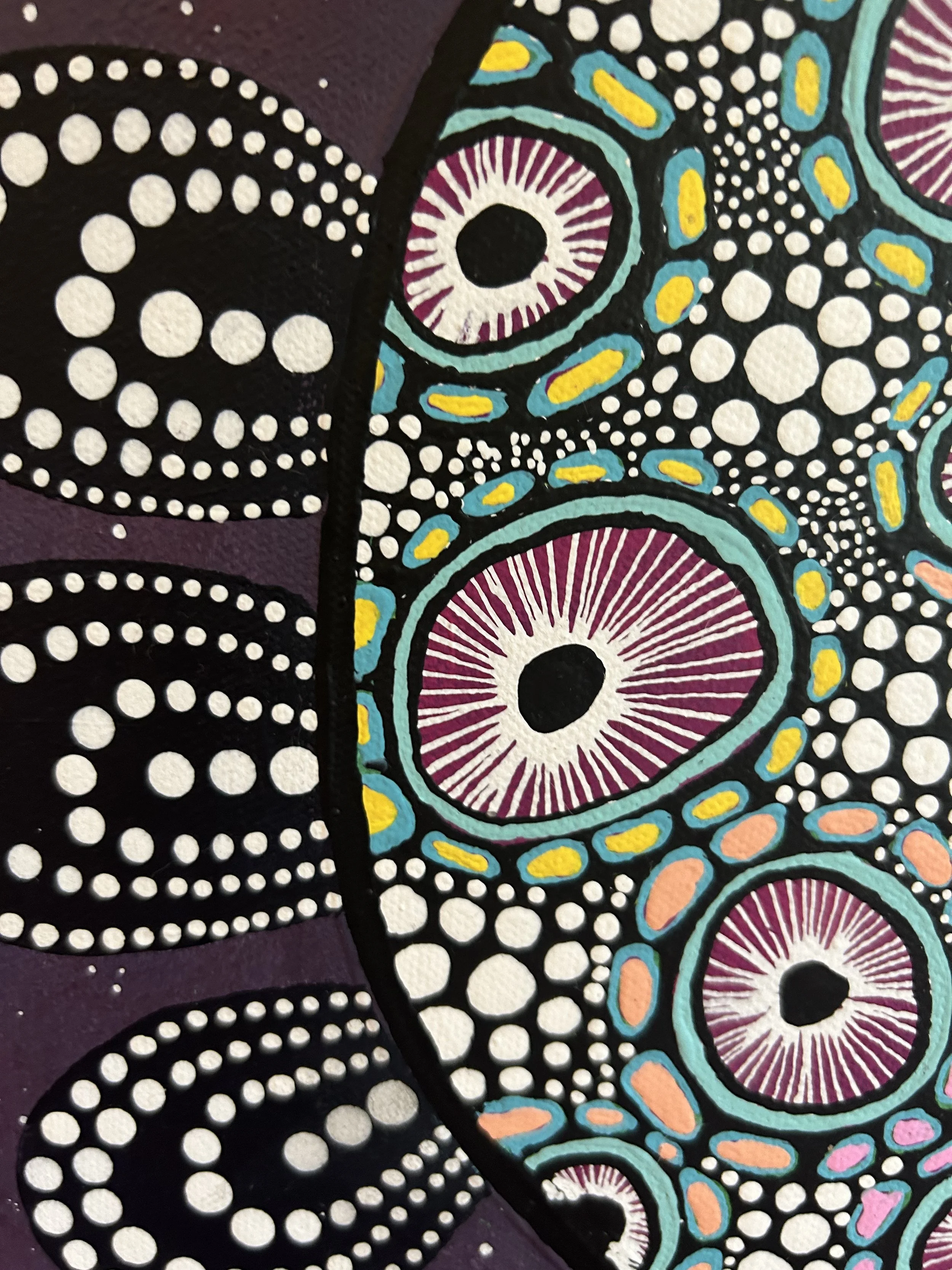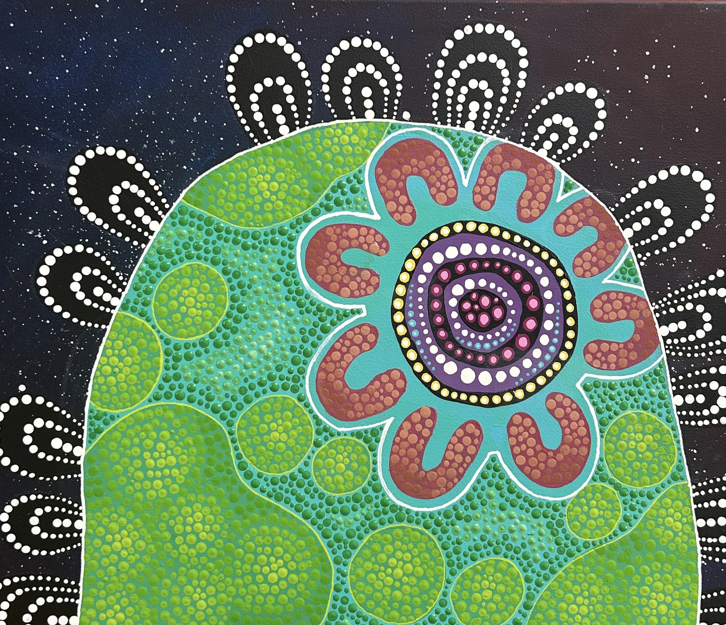 Nanii Davies is a contemporary Wiradjuri artist and healer who is celebrated worldwide for her unique connection to universal love and the Dreaming. Her work honors the stories of her people, while also embracing her evolving relationship with culture, spirit and community.