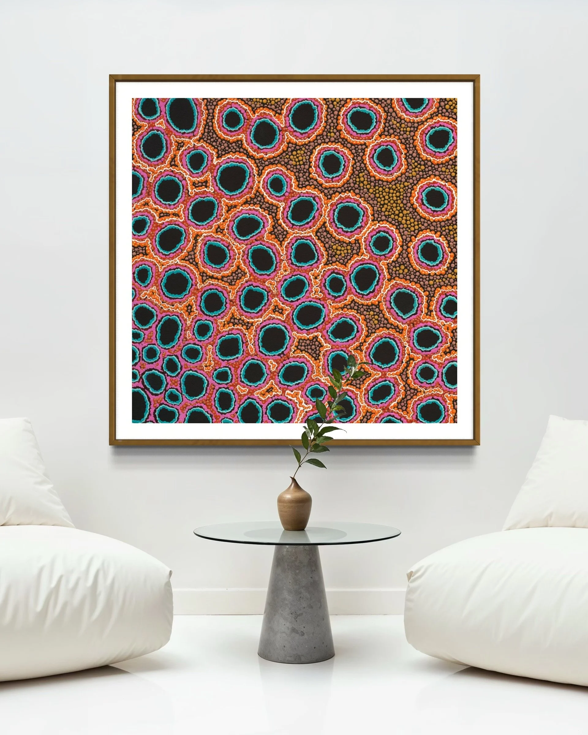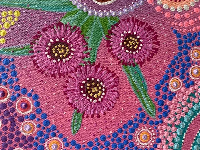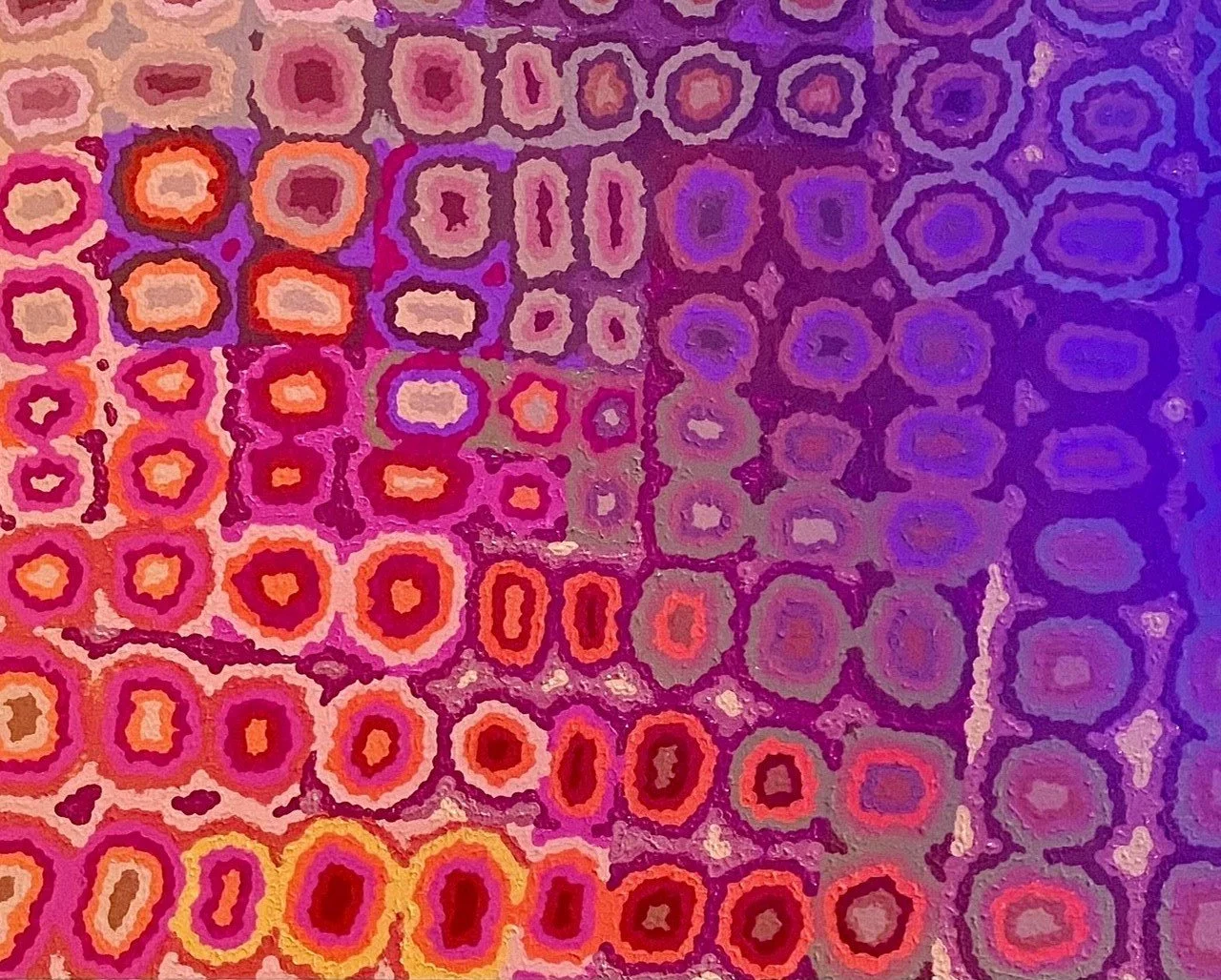 Nanii Davies is a contemporary Wiradjuri artist and healer who is celebrated worldwide for her unique connection to universal love and the Dreaming. Her work honors the stories of her people, while also embracing her evolving relationship with culture, spirit and community.